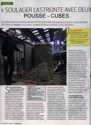 Article de presse "Soulager l'astreinte avec deux POUSSE-CUBES" - n°211 - Mars 2013 L'éleveur laitier